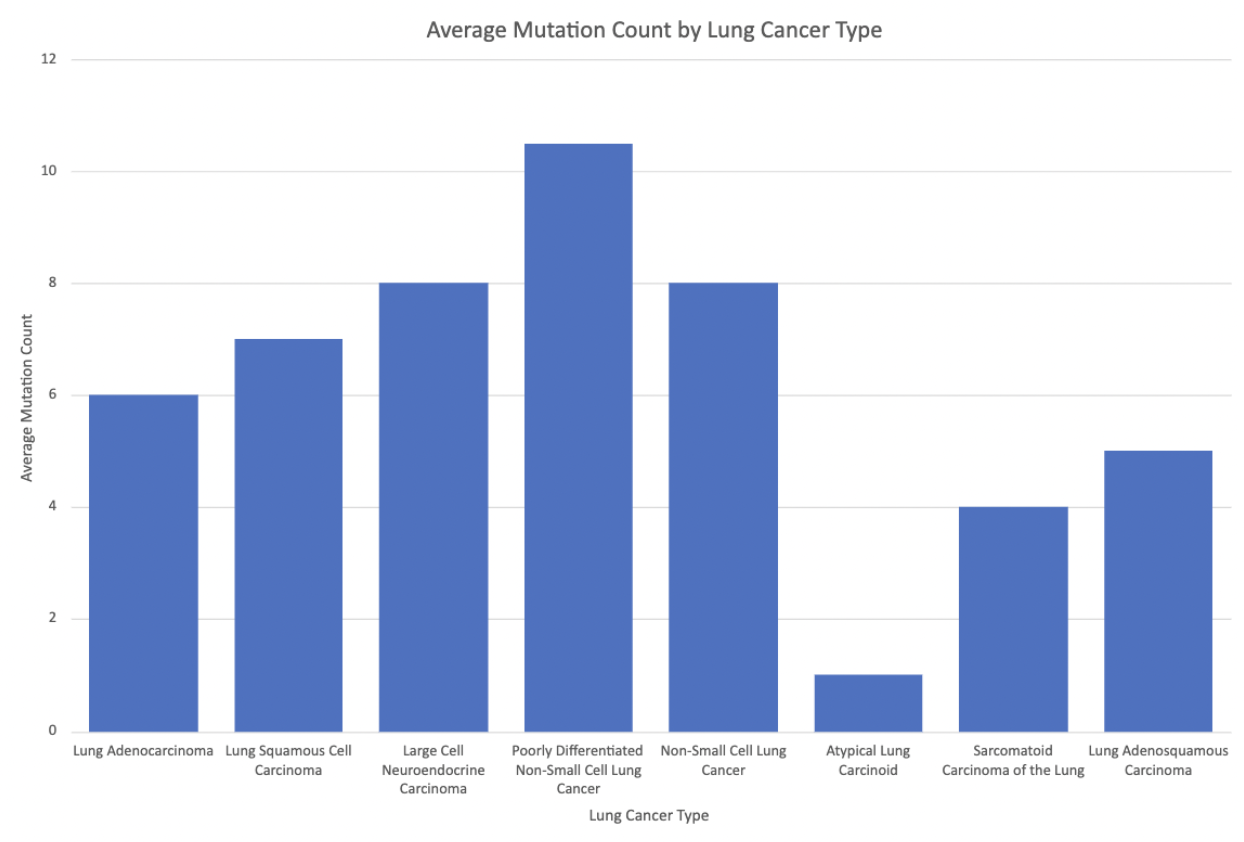 Lung cancer is a devastating disease with a high mortality rate, illustrating a significant global health concern. The development of lung cancer is a complex process influenced by different genetic alterations that accumulate in cells over time. The MSK-IMPACT 2017 dataset provides valuable genomic information which allows researchers to explore the relationship between mutation count and the developement of different types of cancer. This analysis is how mutation count impacts lung cancer, providing insight on the molecular mechanisms that contribute to its development.